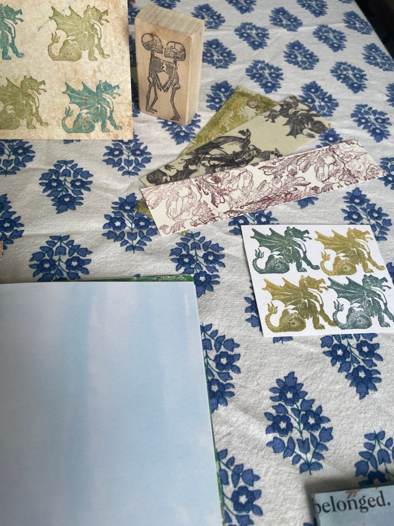 Our art is often made using leftovers, our old things, stuff we find, thrifted items (children’s books, old books, paper off cuts, old clothes etc)
